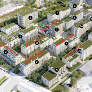 Auf den ehemaligen Hrachowinagründen wurden insgesamt 6 neue Bauteile mit nachfolgender Nutzung errichtet: