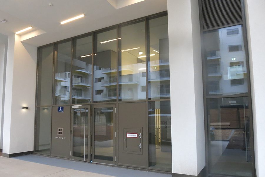 irekt an der Erdberger Lände und in unmittelbarer Nähe zum Grünen Prater bzw. Donaukanal wurden neue Wohn- und Geschäftshäuser errichtet. Von den insgesamt 10 Bauteilen hat unser Unternehmen für 6 Bauteile die Innen- und Außenportale geliefert.