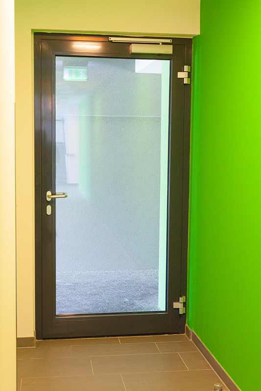 Unser Unternehmen lieferte für dieses Objekt das wärmegedämmte Alu/Glas-Haupteingangsportal samt danebenliegender Fassadenkonstruktion und Nebeneingangstüre, sowie sämtliche EI30-Feuerschutztüren zu den Laubengängen und Stiegenhäuser.